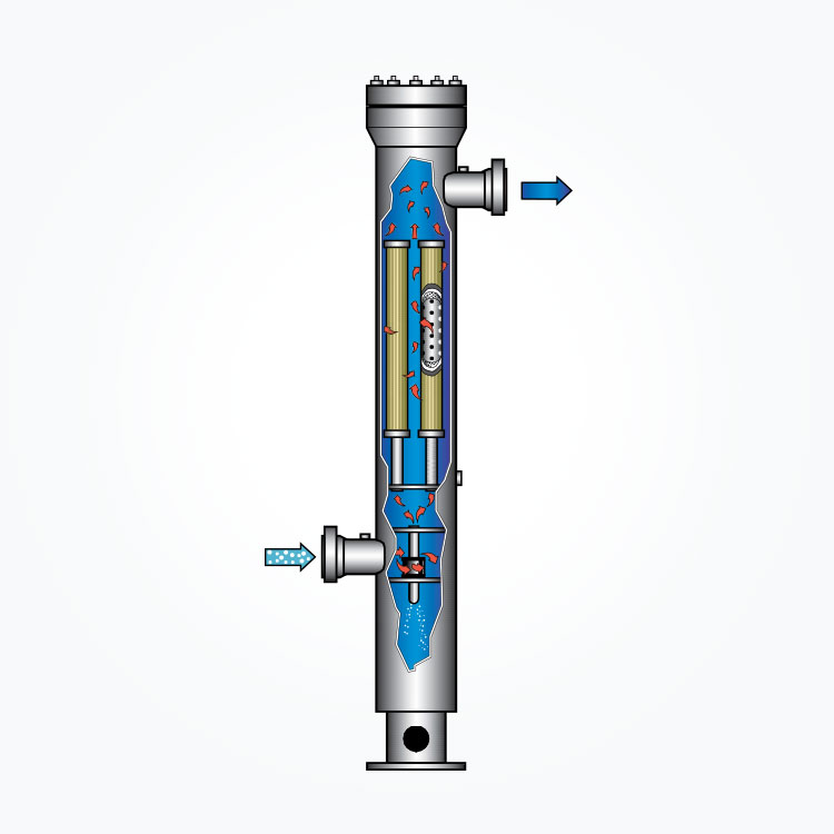 Izmantojot pilnu diametra iesaiņotāju, Coalescer elementu var aizstāt īsākajā laikā un piepūlē. Hidrociklons vai asmens Demister ir pilnīgi bez apkopes, pašattīrošs un nesatur rezerves vai kustīgas detaļas, kā rezultātā tiek pārtraukta.